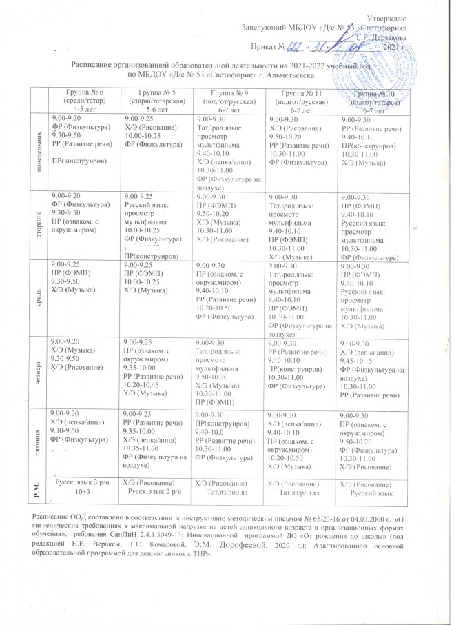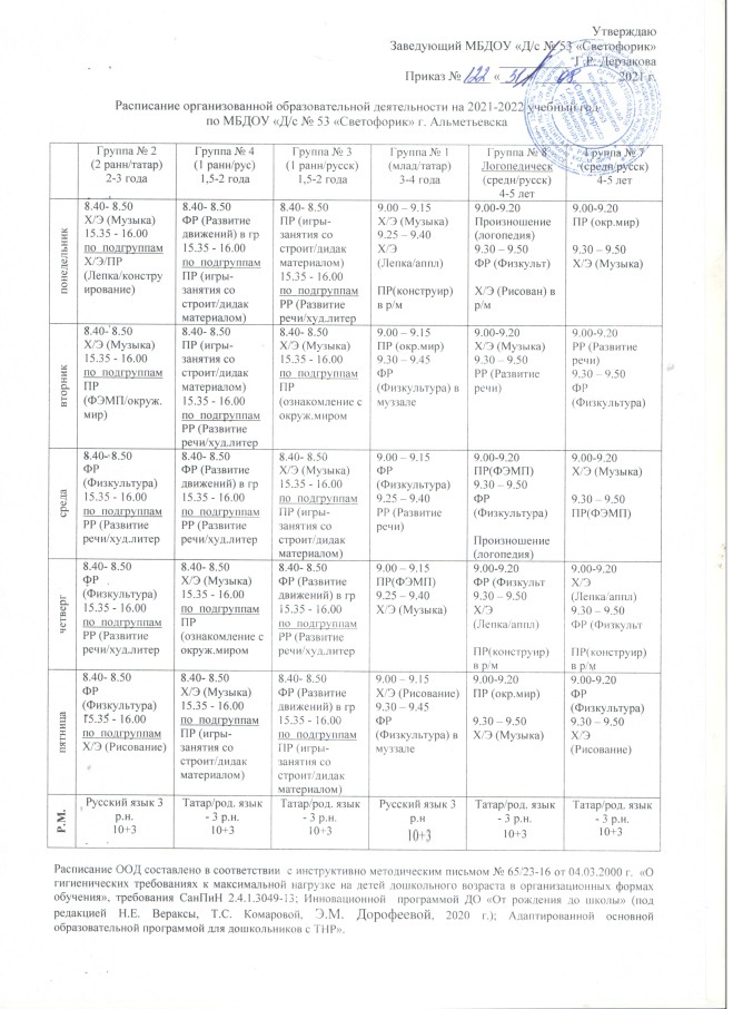 Расписание ООД на 2021-2022 учебный год 1стр 2 стр