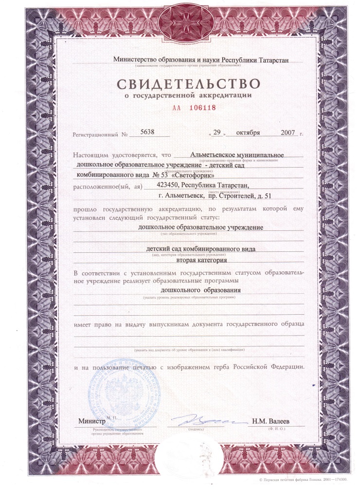 Свидетельство о государственной аккредитации