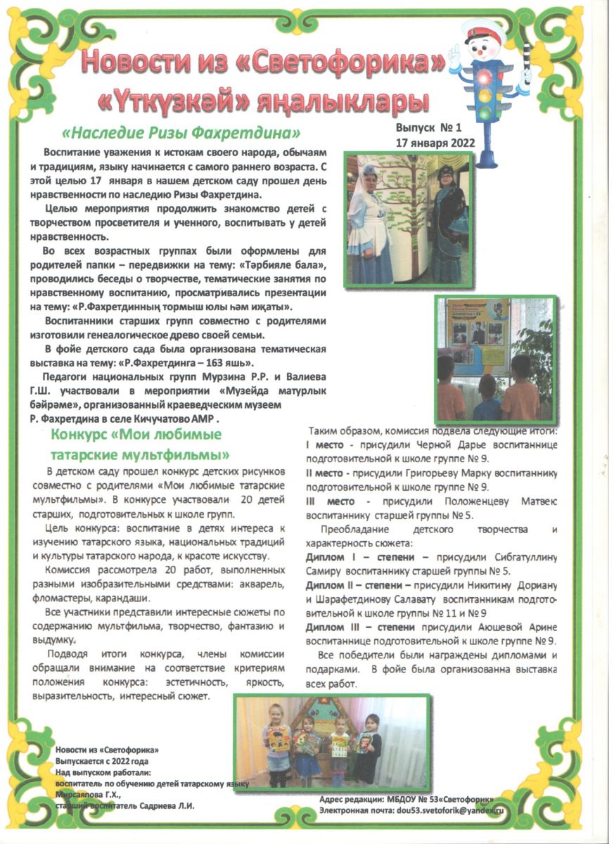 Ежемесячная газета "Новости из Светофорика" / "Үткүзкәй яңалыклары""