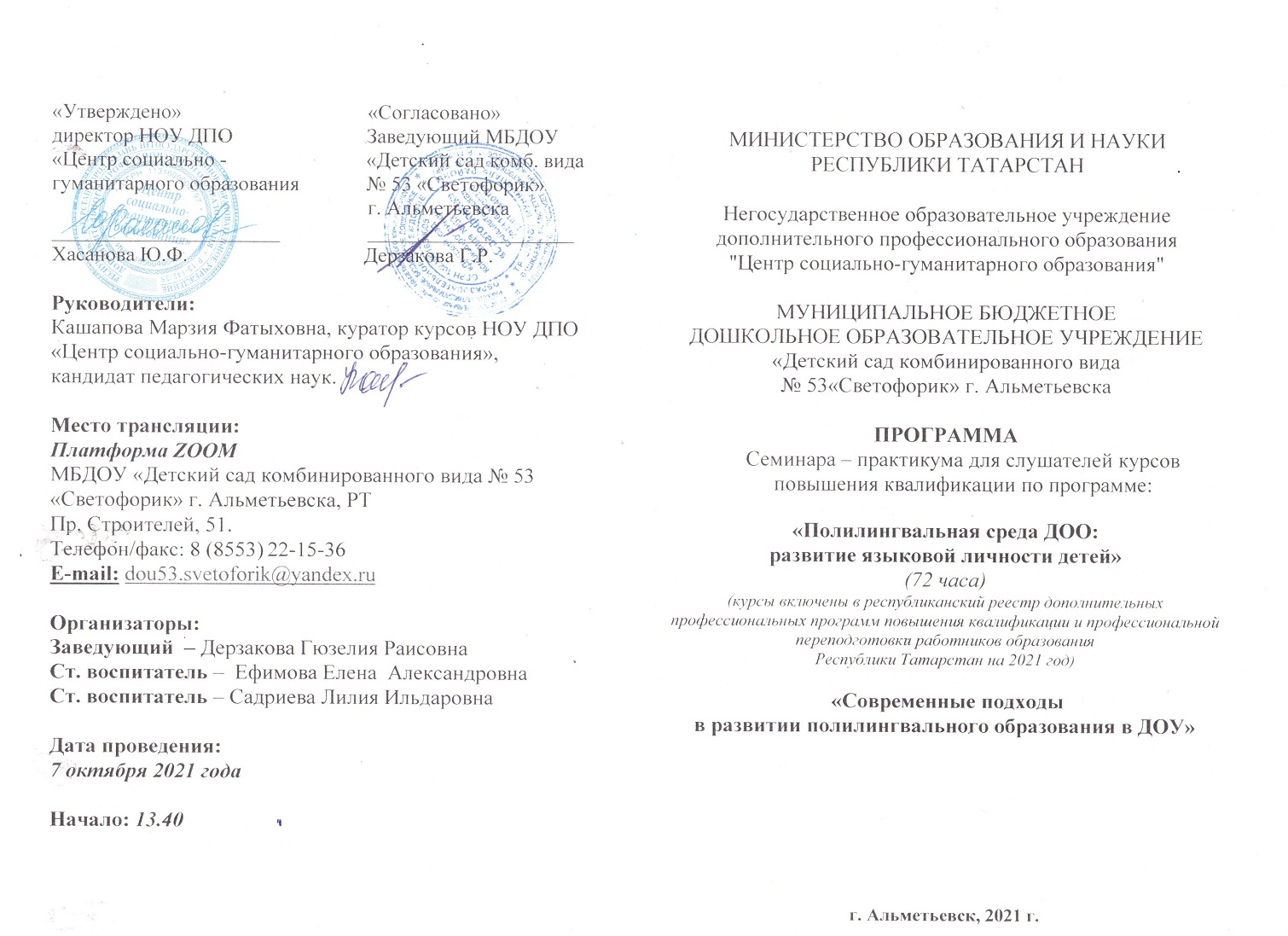 Программа Семинара – практикума «Полилингвальная среда ДОО: развитие языковой личности детей»