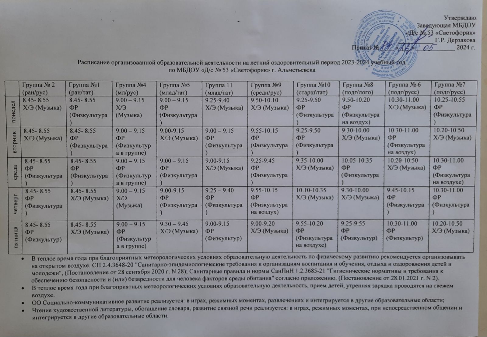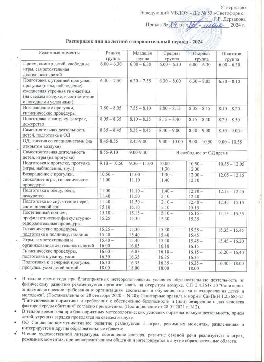 План воспитательно-образовательной работы ДОУ на ЛОП 2024