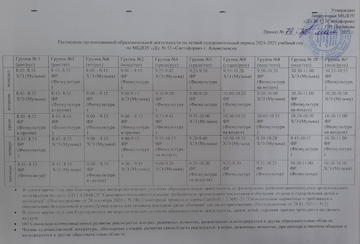 План воспитательно-образовательной работы ДОУ на ЛОП 2025