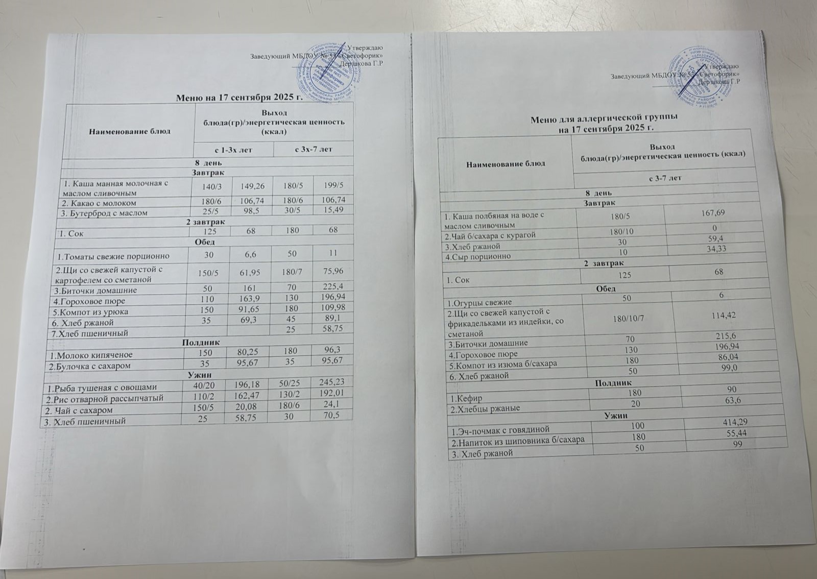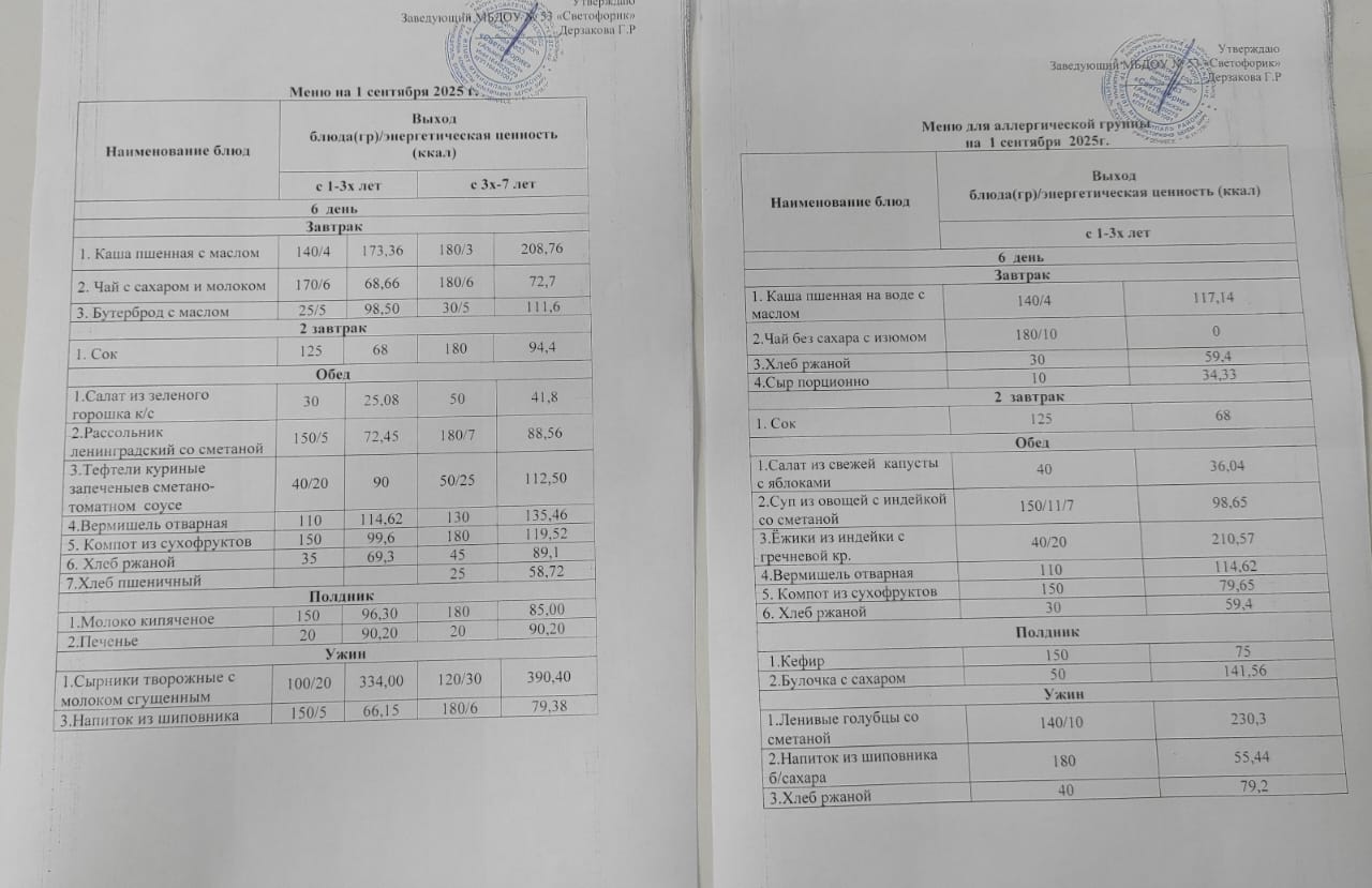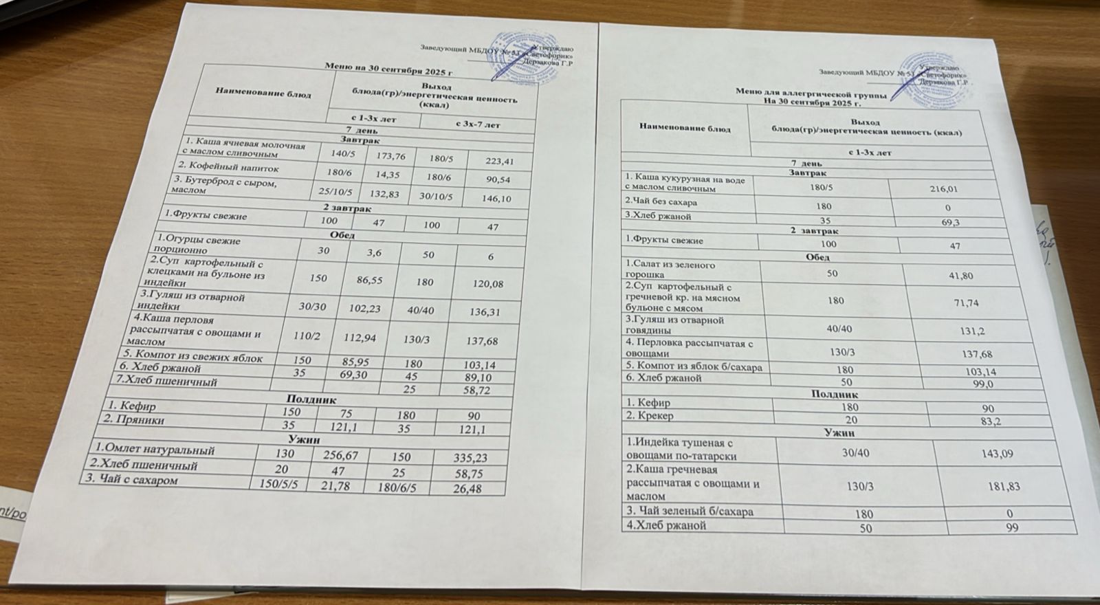 Ежедневное меню (СЕНТЯБРЬ 2025)