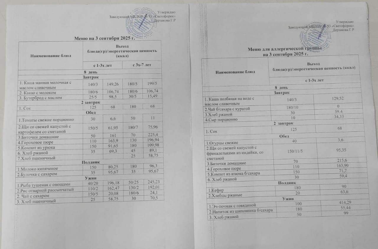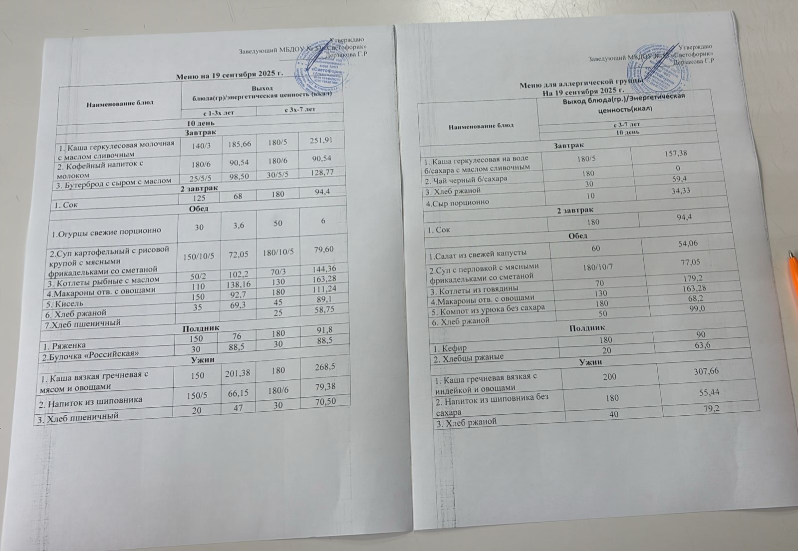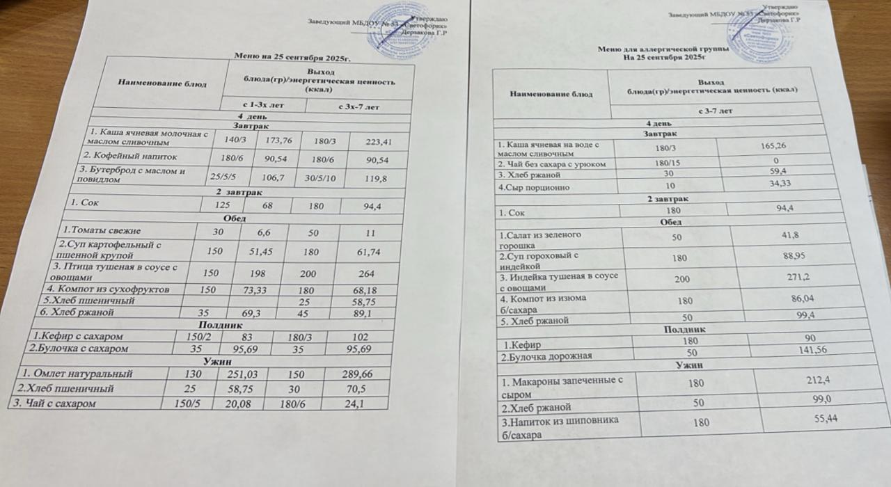 Ежедневное меню (СЕНТЯБРЬ 2025)