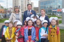 В предверии празднования Дня Победы воспитанники нашего детского сада выступили на праздничной площадке перед ТРЦ "Панорама" с танцем моряков и стихотворением "Мой дед"
