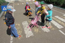 Дети подготовительной логопедической группы с удовольствием участвовали в играх, отвечали на вопросы, отгадывали загадки. Они учились правильно переходить дорогу по пешеходному переходу; учились правилам её перехода. Многие ребята вошли в роль водителей и ездили по проезжей части за рулём велосипеда, пропуская пешеходов и следуя указаниям регулировщика.