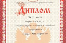 Коллектив МБДОУ №56 "Крепыш" занял III место в городском конкурсе "Родимый край - зеленая моя колыбель".