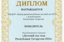 Поздравляем коллектив ДОУ - победителя Республиканского конкурса "Детский сад года Республики Татарстан - 2016"