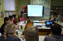 25.11.2015г. прошёл педагогический час с участием педагога – психолога МБОУ «СОШ № 13» М.А. Семеновой, она рассказала об адаптации первоклассников к школе, представила вниманию педагогов презентацию «Результаты диагностики первоклассников к школе». Музыкальный руководитель О.Ю Зиннурова подготовила консультацию «Роль воспитателя в музыкальном воспитании на занятиях и в самостоятельной деятельности». Провела с педагогами анкетирование «Музыкальные способности детей дошкольного возраста». Старший воспитатель М.Н. Киселёва ознакомила с информацией по оформлению языковой среды в соответствии с УМК по обучению детей татарскому (родному) языку.