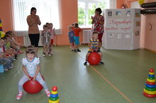 23.06.2014г. Дети младшего и среднего дошкольного возраста приняли активное участие в спортивном досуге «Королевство волшебных мячей». «Попрыгунчик» пригласил ребят в своё королевство мячей, чтобы подружиться с его братьями и сестрами. Знакомясь с мячами, дошколята узнавали о свойствах и качествах шаров и мячей, вспоминали виды спортивных состязаний, а самое главное играли с каждым из них. К празднику подключились старшие дошкольники. На спортивной площадке они продемонстрировали свои спортивные способности в играх-эстафетах и футболе. Массу удовольствия и хорошего настроения унесли с собой дети с праздника.