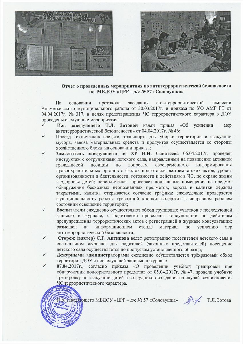 Отчет о проведенных мероприятиях по антитеррористической безопасности