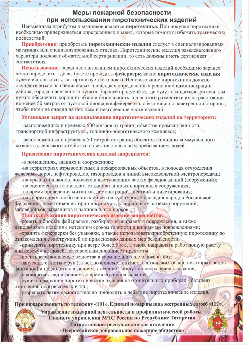 ПАМЯТКА "Меры пожарной безопасности при использовании пиротехнических изделий