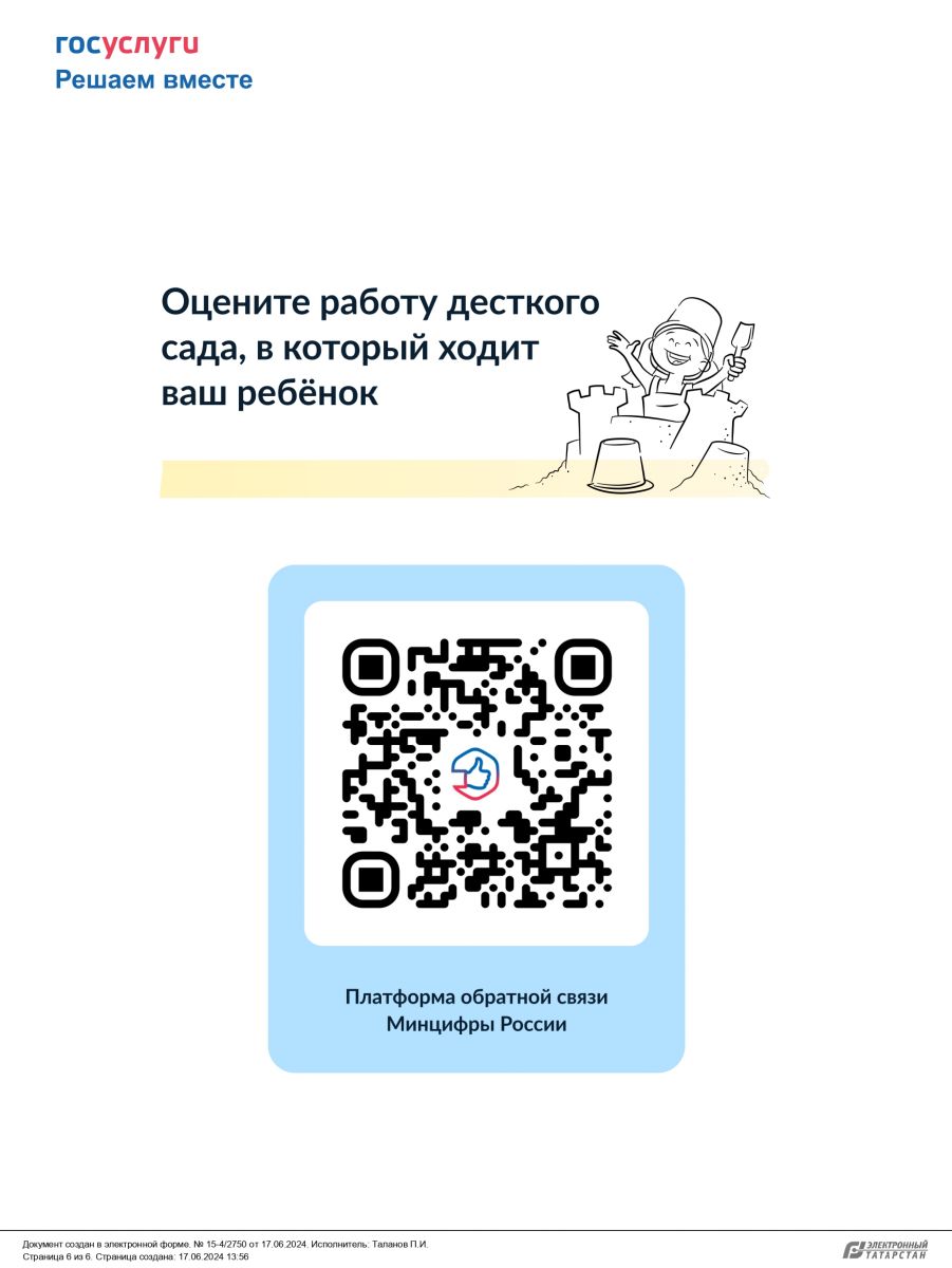 Уважаемые родители! Министерство образования и науки и Министерство цифровизации организовал опрос о работе дошкольных образовательных учреждений. Пройти опрос можно по ссылке https://pos.gosuslugi.ru/lkp/polls/435334/. Обращаем внимание, что срок проведения опросов до 1 июля 2024 года.