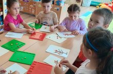 Дети младшей группы № 7 (воспитатель Потапова О. Н.) рисовали красками "Курочка снесла яичко"