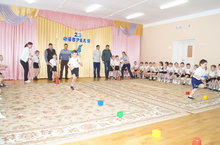 Сегодня 19 февраля в нашем детском саду наши мальчики и девочки поздравили пап и дедушек с праздником День Защитника Отечества. Дети пели, читали стихотворения, соревновались в ловкости, силе, знаниях. Соревнования проходили с задором. Ребята бегали, прыгали, преодолевали "полосу препятствий", как настоящие войны. Также в соревнованиях активное участие приняли и папы.