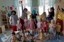 Сегодня весь детский сад отмечал день юмора и смеха. Зажигательная девочка Пеппи (Длинный чулок), озорной ковбой, Траляля и Труляля и в меру упитанный мужчина Карлосон шутили, придумывали для ребят весёлые конкурсы, забавные эстафеты, загадывали смешные загадки и пели зажигательные песни! И хоть на улице пасмурно и идёт дождь, а у нас слёзы только от смеха!