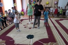 Сегодня в нашем детском саду прошёл весёлый праздник - "День "Бантиков". Повеселились от души, получили все призы! Дети участвовали в конкурсах, играх, пели весёлые песни кто - кого перепоёт. К нам в гости приходил клоун Бантик, показывал фокусы, учил кривляться перед зеркалом, пускал мыльные пузыри, водил хоровод. Познакомил нас со своей подружкой – клоунессой Люсей. Люся загадывала ребятам загадки, учила их рисовать бантики, танцевать, играть с воздушными шарами. На нашем празднике прошёл конкурс на лучший костюм из бантиков! Победителями стали девочки из группы №13 и мальчики из группы №5.