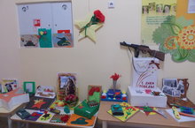 В фойе ДОУ и в раздевалках групп размещены выставки работ детей и родителей к 70-ти летию Победы.
