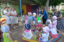 Лето прекрасная пора, Лето прекрасная пора, когда можно хорошо отдохнуть загореть, закалить иммунитет и приготовиться к долгому осенне-зимнему периоду. Наши воспитанники прекрасно отдохнули, ежедневные прогулки на свежем воздухе, воздушные и солнечные ванны, игры с песком и водой, закаливающие процедуры проводились педагогами нашего детского сада в течение всего летнего оздоровительного периода. Воспитателями проводились мероприятия соответственно плану летнего периода. В детском саду проходили Дни природы, Дни огородника, В мире животных, Дни Универсиады. В пасмурные, дождливые деньки все собирались в музыкальном зале для просмотра мультфильмов. Мультфильмы из серии Азбука безопасности, Приключения Нефтяши, по мотивам татарских сказок на русском и татарских языках. С воспитанниками старшего возраста проводили экскурсии на перекресток, к светофору. Наблюдали за движением транспорта. Работа на огороде, поливка клумб, любование своими выращенными цветами прививают любовь к природе, приобретение трудовых навыков.