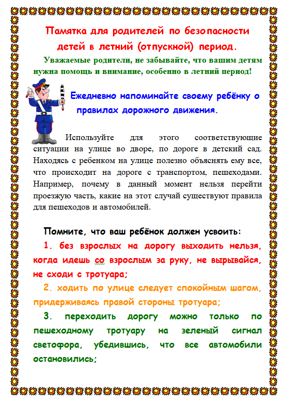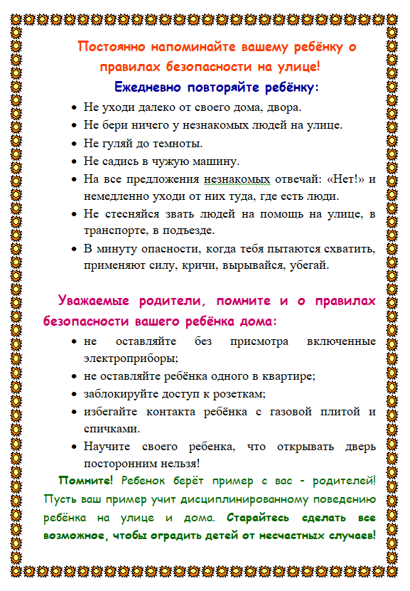 Основные правила, соблюдение которых поможет сохранить жизнь и здоровье детей: