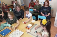 25 января на базе нашего детского сада прошло методическое объединение педагогов детских садов, работающих в рамках муниципальной базовой площадки по внедрению педагогики М. Монтессори по проблеме «Совместная деятельность с использованием материалов М.Монтессори». На мероприятие присутствовали руководители, старшие воспитатели, воспитатели детских садов №30,44,46. В средней группе №4 «Любознайки» воспитателями Зотовой Людмилой Анатольевной и Садыковой Лейсан Фазыловной была проведена совместная деятельность «Солнышко в гостях у ребят». Цель: установить эмоциональный контакт между детьми, между взрослым и ребёнком. Развивать познавательные способности детей через работу с дидактическим Монтессори-материалом. Задачи: Образовательные: -развивать представления детей о геометрических фигурах, -узнать о взаимосвязи геометрических фигур друг с другом, -составлять из одних геометрических фигур другие, -закреплять названия геометрических фигур.