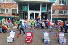 В рамках проекта "Дворовые игры по ПДД" среди дошкольных образовательных учреждений прошел познавательный квест на территории детского сада №23 "Малыш". В квесте участвовали команды воспитанников подготовительных к школе групп детских садов №23,34,54.Дошколята отвечали на вопросы о правилах дорожного движения, играли в игры, участвовали в эстафетах, выполняли задания веселого клоуна Петрушки. По итогам квеста переходной кубок "Дворовые игры по ПДД" достался команде "Пешеходы" детского сада №34. Следующий квест будет проходить на территории детского сада №34, с приглашением близлежащих садов. В заключение мероприятия Рафигуллина Л.М, начальник отдела профилактики территориального управления ГБУ БДД в г.Альметьевске вручила командам памятные призы, и еще раз напомнила о важности знаний правил дорожной безопасности.