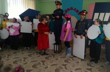 По традиции конец августа начало сентября проходит профилактическая акция «Внимание – дети» оп правилам дорожного движения. В рамках акции в группах оформили тематические папки-передвижки «Знаем правила дорожного движения летом и зимой!», «Если на улице дождь!», «Осень на пороге!», «Будь внимательным на дороге!», «Засветись в темноте!» На первом педагогическом совете был утвержден план работы по ДДТТ на 2017-2018 учебный год. В утренние часы с воспитанниками проводились «Минутки безопасности!», повторялись обязанности пешеходов, правила поведения пешеходов, а особенно маленьких пешеходов, которые должны передвигаться по улицам города только со взрослыми. В группах были организованы просмотры мультфильмов «Азбука безопасности тетушки Совы», «Дозорные дорог», организованы выставки рисунков. Игра – ведущий вид деятельности дошколят, и только играя, ребенок запомнит и правила и обязанности. В группах в течение месячника активно проводились сюжетно-ролевая игра «На улице», дидактические и настольно-печатные игры «Поставь правильно знак», «Светофор», «Найди отличия», «Знаки на дорогах», «Водитель-пешеход» и другие. Для родителей были проведены тематические консультации «Вы и дети!», «Дурной пример заразителен!», показаны ролики «Как вести себя на дороге!». В рамках акции артисты Татарского драматического театра города Альметьевска показали спектакль по правилам дорожного движения
