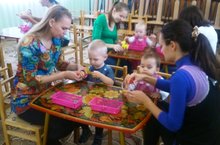 В детском саду №34 прошли первые занятия в адаптационной группе кратковременного пребывания «Малыш» для детей, не посещающих детский сад. Малыши вместе с мамами с большим удовольствием занимались музыкой, пели песенки, хлопали в ладоши. В физкультурном зале вместе с куклой Машей выполняли несложные упражнения. на занятие с педагогом – психологом познакомились с уточкой, поиграли с водичкой, при помощи прищепок уточке сделали лапки.