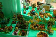 В детском саду в рамках комплексно-тематического планирования проходит тематическая неделя «Золотая осень». И вновь традиционная выставка совместного творчества детей и родителей – поделок из природного материала «Осень сказку подарила!» Сказочные композиции из овощей и фруктов, осенние листья, шишки и многое другое что пошло в дело. Объемные работы, картины, корзины и даже осенние скворечники. огромное количество поделок на выставке, которую посетили все наши воспитанники вместе со своими родителями. И по традиции никто не останется без внимания, всем на новогодних праздниках Дед Мороз принес дипломы- подарки от осени. Большое спасибо родителям за активное участие в мероприятиях нашего детского сада.