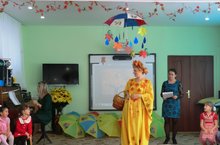 В рамках годового плана воспитательно-образовательной работы и комплексно-тематического планирования в детском саду прошел блок «Золотая Осень» Итоговым мероприятием стали развлечения «Золотая осень» В зале закружились осенние листья, зазвучала музыка, песни осенней тематики, стихи про осень, исполнялись осенние танцы. Ребятки соревновались в эстафетные игры «Собери урожай», «Пройди по лужам», «Кто быстрее» На праздник пришли и Веселый клоун, Слякоть и Холодрыга, и сама красавица Золотая Осень, которая принесла свои угощения – вкусные наливные яблоки.