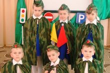 Наша агитбригада "Бравые солдаты - ружные ребята", наш девиз "Знай и выполняй правила дорожного движения во все времена!"