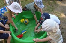 Воспитатель средней группы «Сказка» организовала для детей игры с водой, чему воспитанники очень обрадовались. В жаркие, летние дни без таких игр не обойтись. Вода успокаивает, расслабляет, а в теплую погоду детям просто приятно поплескаться в ней. Воспитанники играли в игры: «Рыбалка», Кто быстрее нальет водичку», «Достань камушки со дна», «Тонет, не тонет», «Кто дальше» и т.д. Дети с большой радостью играют в предложенные педагогом игры, и всегда ждут нового дня, новых прогулок, интересных игр.