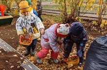 Сегодня, дети и сотрудники нашего детского сада приняли активное участие в экологическом осеннем субботнике.