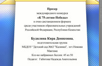 Поздравляем воспитанницу Будилину Киру (подготовительная группа) и руководителя Габитову Н.А.