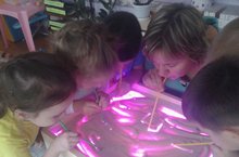 Рисование песком-искусство молодое. Рисоваие песком доступно детям с самого раннего возраста и развивает мелкую моторику рук, укрепляет кисти рук, развивает творческую фантазию, усидчивость и внимательность. Рисование песком очень интересное и увлекательное занятие для детей. Воспитатели средней группы учат детей творчеству.