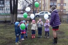 А кульминацией для детей был экологический флешмоб. Дети разного возраста 3-4 и 7 лет станцевали флэшмоб, а потом малыши запустили в небо зеленые и белые шары со словами призыва: «Земля наш общий дом, береги всё лучшее в нём!».