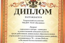 Творческий коллектив МБДОУ "Д/с № 63 "Калинка" ставшими лауреатами городского смотра-конкурса художественной самодеятельности среди работников дошкольных образовательных учреждений АМР, посвященного 70-летию Победы в Великой Отечественной войне