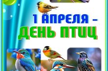 «Международный день птиц» - экологический праздник, отмечающийся ежегодно в день 1 апреля. В СССР официально праздновался начиная с 1926 года (с перерывами), в России возродился в 1994 году; является наиболее известным праздником, посвящённым птицам, отмечаемым в Российской Федерации.