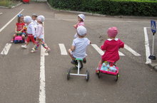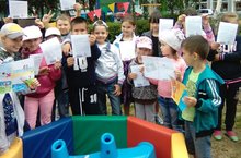 В рамках проведения Всероссийской акции по безопасности дорожного движения "Внимание, дети!" На базе МБДОУ № 9 "Садко" прошла городская акция "Возьми ребенка за руку!". Наши воспитанники продолжали участие в этой акции и передали трафарет первоклассникам СОШ № 1 для нанесения в жилом квартале около своей школы.