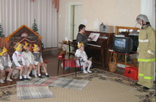 В рамках недели безопасности руководитель театрального кружка «Скоморошки», музыкальный руководитель Дюгаева Светлана Викторовна совместно с воспитателем Павловой Валентиной Анатольевной и воспитанниками старшей группы подготовили для детей нашего детского сада театрализованное представление «Новоселье у козлят».