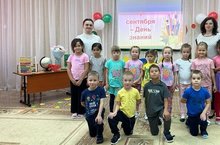 У нас в саду тоже прошел праздник "День знаний" для подготовительных групп детского сада N 1,8,11. Дети отгадывали загадки на школьную тему и про героев любимых сказок, решали задачки, играли и танцевали.
