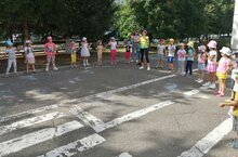 В средних, старших и подготовительных группах 2 сентября 2022 года вместе с воспитателем: Мухомдеевой Дианой и инструктором по физической культуре Кудаяровой А.М., прошло развлечение по ПДД «Правила дорожные детям знать положено». На котором, дети вместе с «Светофором» отправились в страну дорожных знаков. Повстречав там «Инспектора». Дети с удовольствием рассказали про сигналы светофора, а запомнить правила дорожного движения помогли игры: «К своему знаку беги», «Довези не урони», «Самый быстрый, самый ловкий». Ребята рассказали, что означают дорожные знаки, как вести себя на дороге. В конце мероприятия дети вместе с инспектором станцевали флэш-моб.