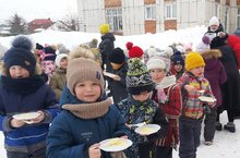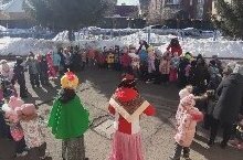 После нескольких соревнований Дед Мороз все таки уступил Весне свое место. Нэурузбикэ принесла всем детям гостинцы - угостила их блинами. Песни, весёлые танцы, игры, сюрпризы порадовали детей от души. -