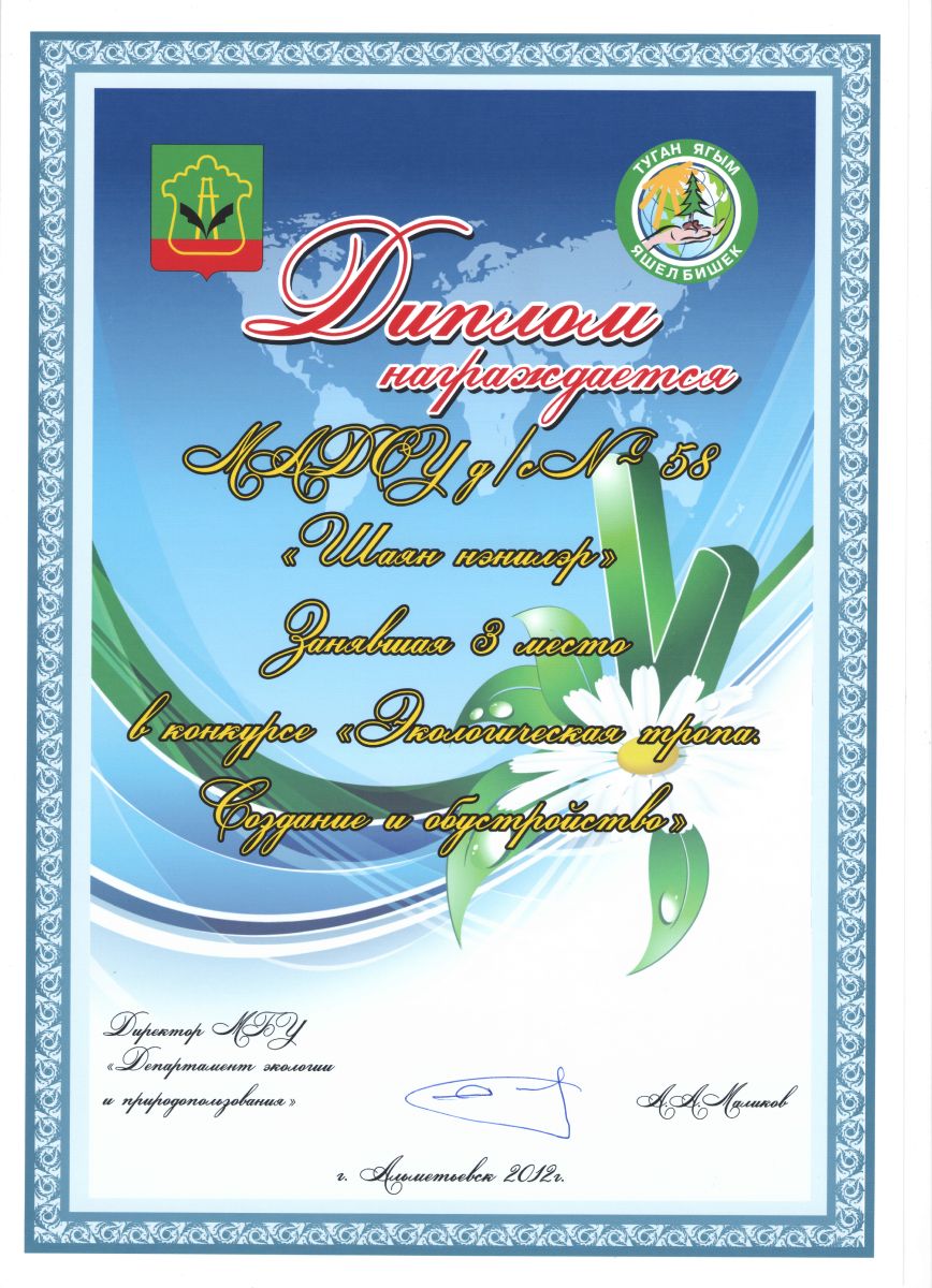 Муниципальное бюджетное дошкольное образовательное учреждение «Детский сад комбинированного вида № 58 «Шаян нэнилэр» Альметьевского муниципального района Республики Татарстан»//«Татарстан Республикасы Әлмәт муниципаль бюджет мәктәпкәчә белем бирү учреждениясе 58 нче катнаш төрдәге «Шаян нэнилэр» балалар бакчасы»
