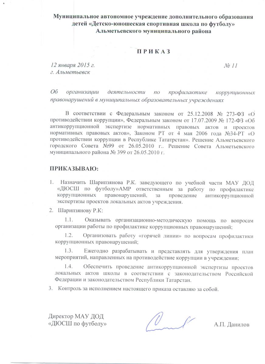 приказ по профилактикекорупционных правонарушений