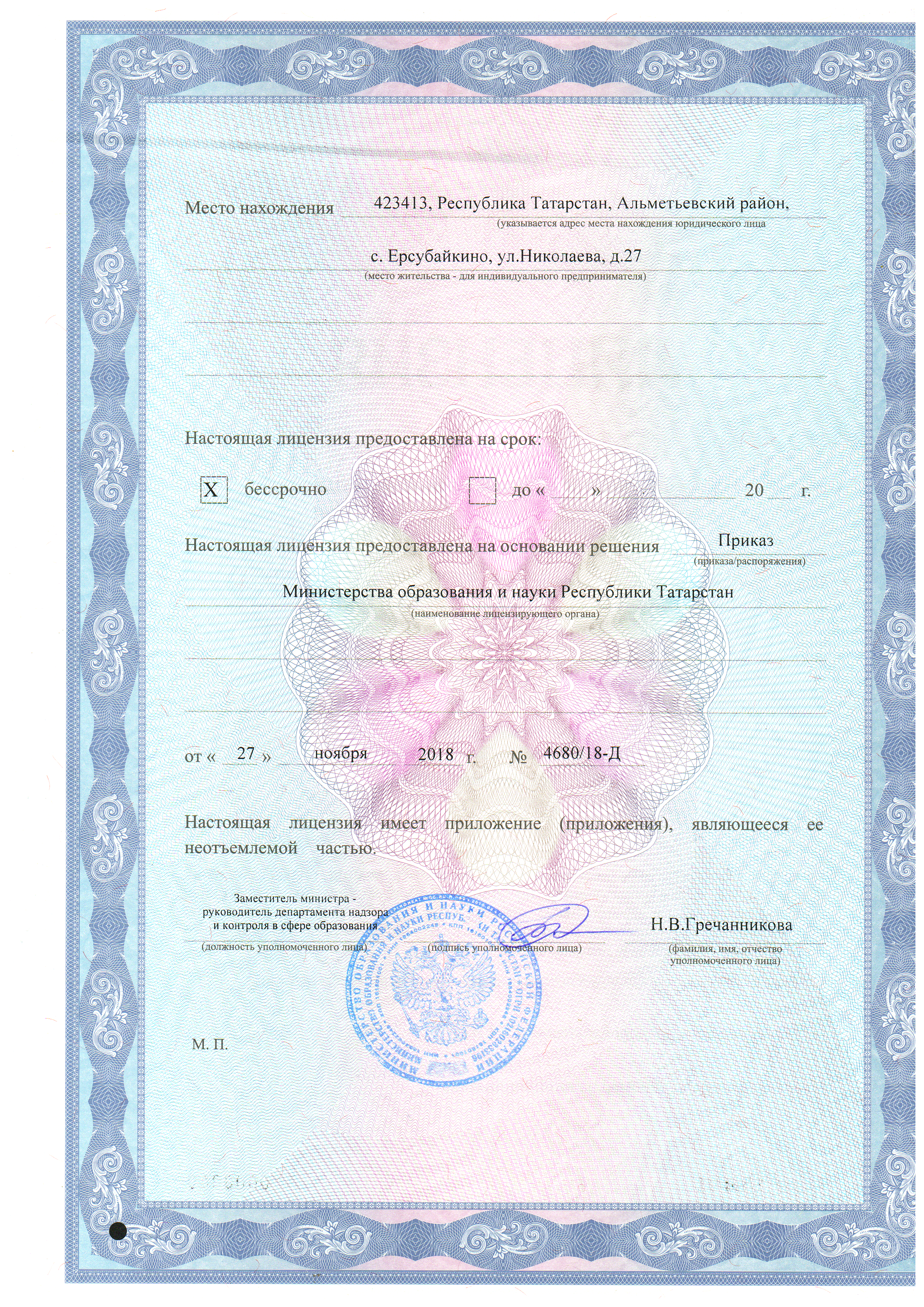 Лицензия на осуществление образовательной деятельности