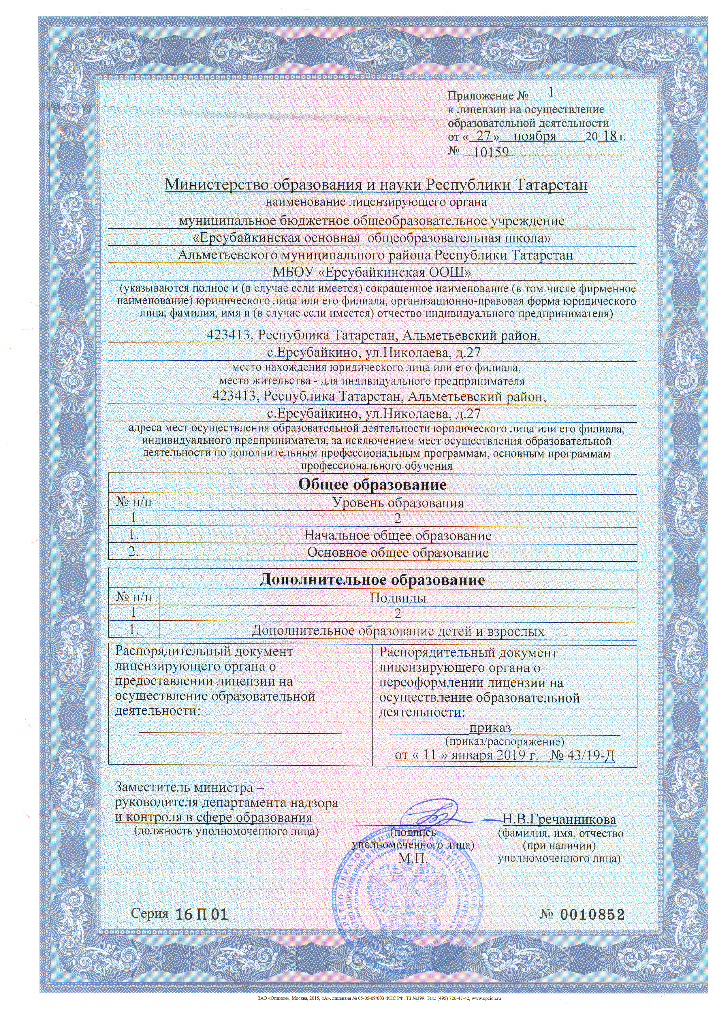 Адрес: 423413, РТ, Альметьевский район, с. Ерсубайкино, улица А.Николаева д.27