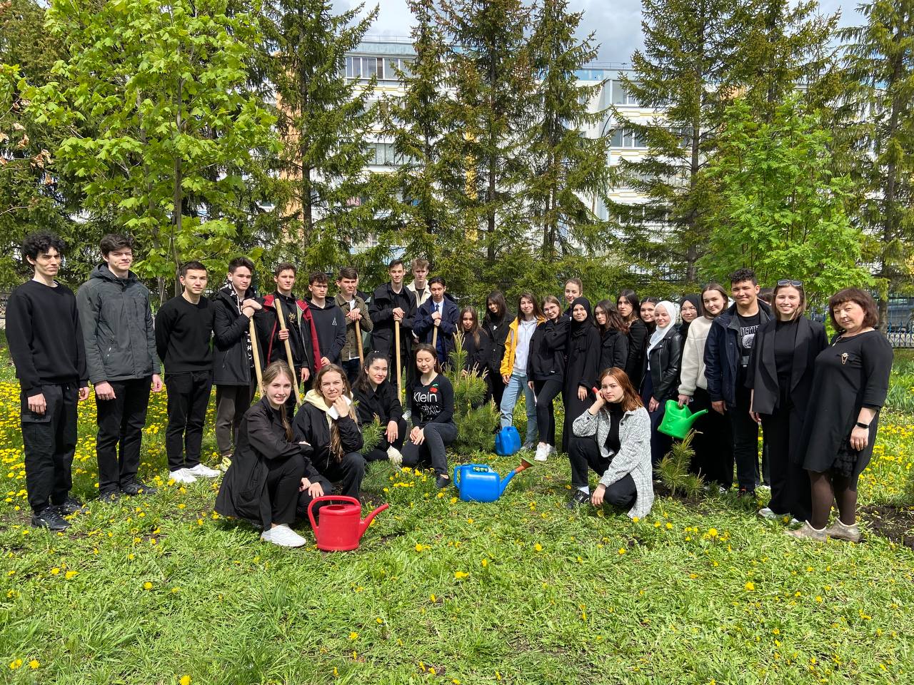 Гимназиябезнен традициясенэ тугры калып чыгарылыш сыйныфы укучылары мэктэп яны ббакчасына агач утырттылар.