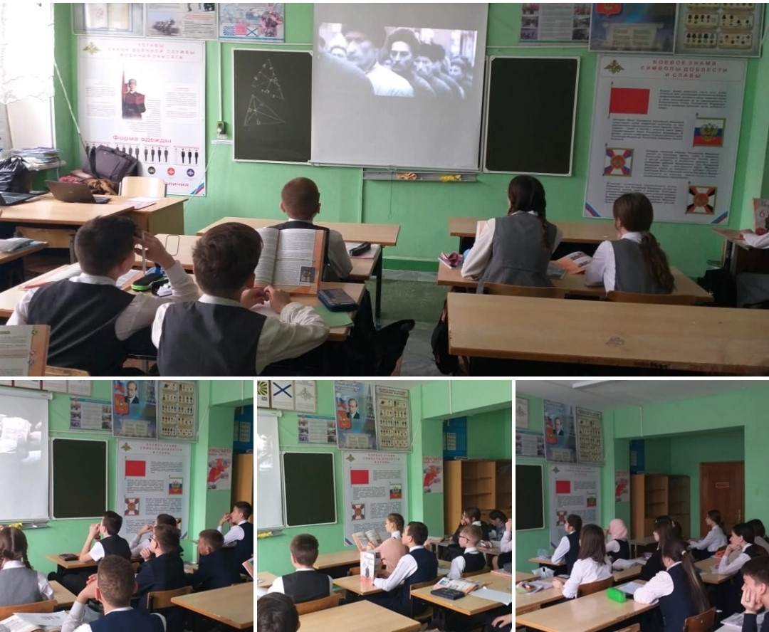 6 мая Классный час в рамках КИНОМарафона " 3 дня до Победы" показ фильма "Памятники победы" и проведение интеллектуальной викторины старшеклассниками 10 а для учащихся7в,6а,б,в,г классов.