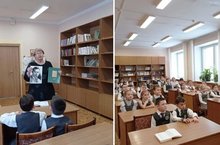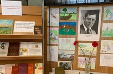 15 февраль- Муса Җәлилгә багышланган китапханә дәресе.2 г сыйныфы укучылары һәм Фаягөл Зөлфәтовна.